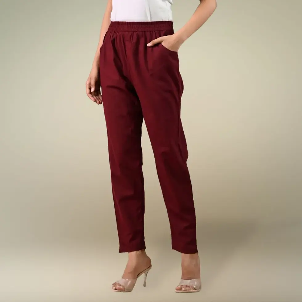 Combo of 2 Cotton Red and Cyan Women Trousers
